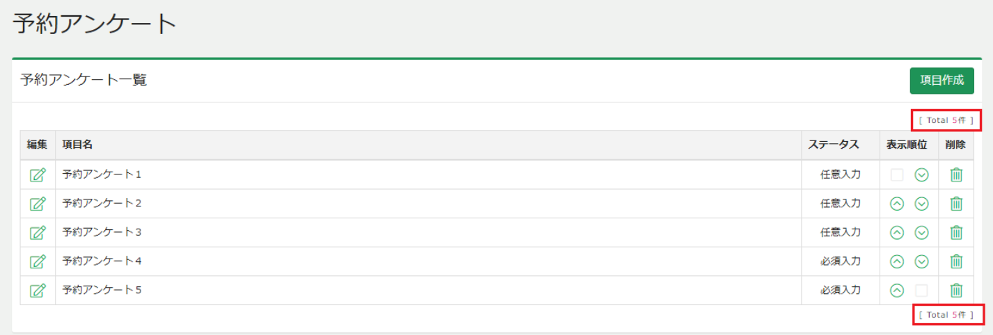 予約アンケート一覧で、アンケートの登録件数が表示されるようになります。