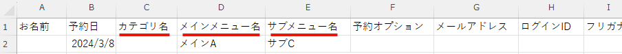 予約データCSVダウンロードの項目名 ※CSVファイルの項目名が変更になるのでご注意ください。