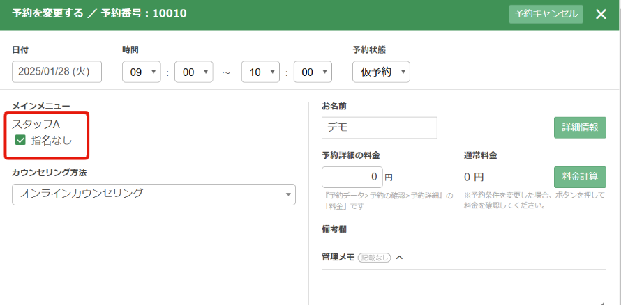 ・サブ管理者は”予約情報”の権限が編集可能”である場合のみ操作可能です。