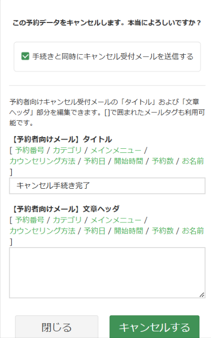 予約者宛に送付できるメールに、 メールタグの挿入や内容の編集ができるようになります。