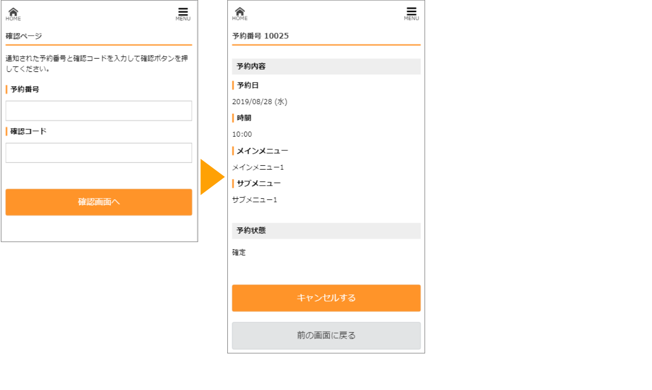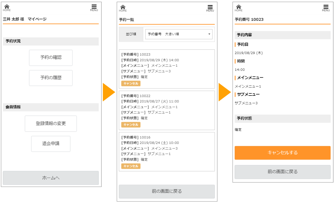 マイページ→予約一覧→予約詳細→キャンセルページ