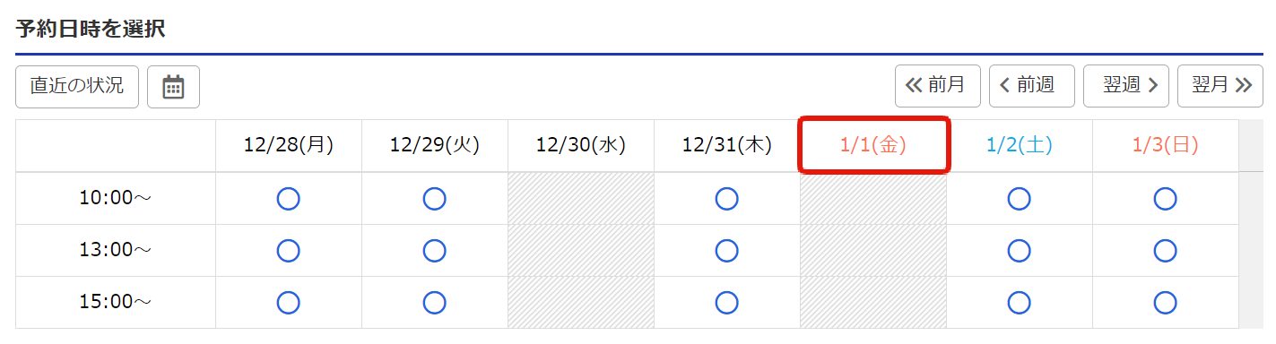 こちらより、祝日設定をしたい日付を選択し、"予約サイトで祝日の日付を赤色にする" を選択することで設定されます。また、祝日の営業時間を通常営業日とは異った設定にすることも可能です。設定方法についてはこちらをご確認ください。