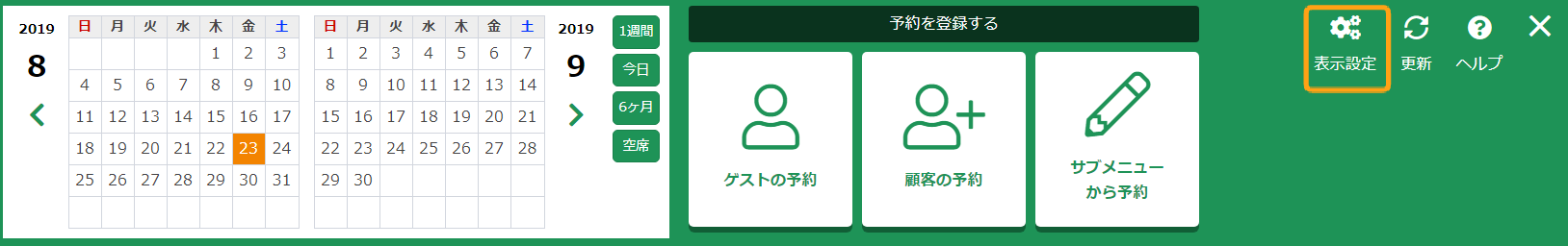 予約管理カレンダー上の「表示設定」で表示する項目を選択できます。