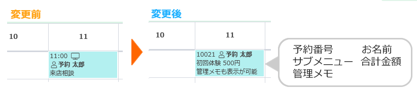 予約管理カレンダーのコマの表示項目をカスタイズできるようになります