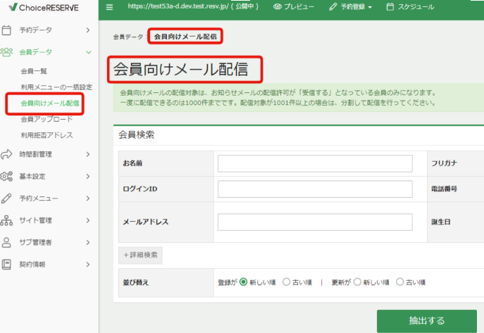 管理画面メニュー「メルマガ一斉配信」の名称を、「会員向けメール配信」に変更します。
