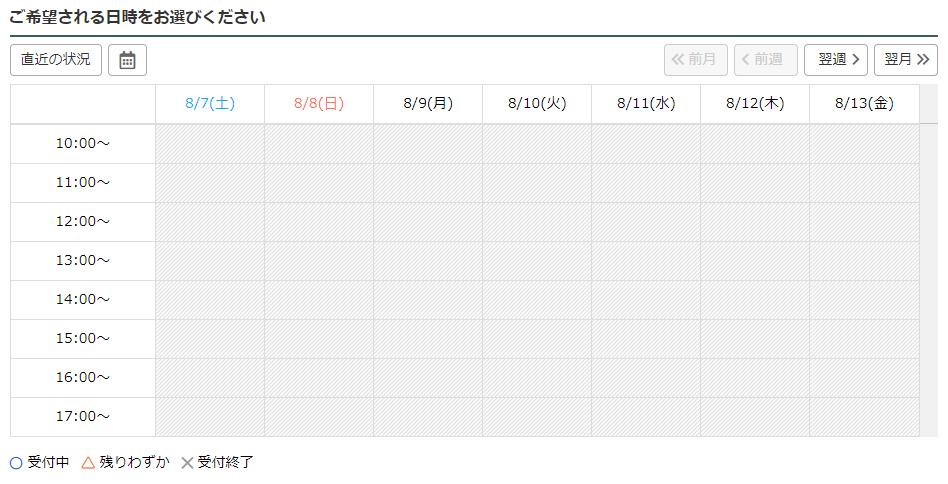 予約枠が残っている場合でも受付期間外の場合、予約サイトから予約を受け付けることはできません。