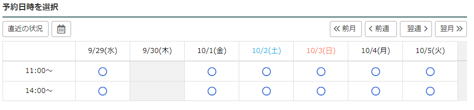 上記画像のようにすべての予約枠がグレーになる場合の対処方法です。