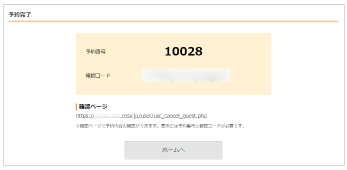 予約サイトの予約完了ページで、予約番号を大きく表示します。