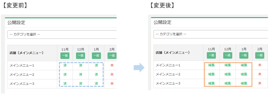 「編集」をクリックするとメインメニューの提供数を調整するなど公開枠の設定ができます。