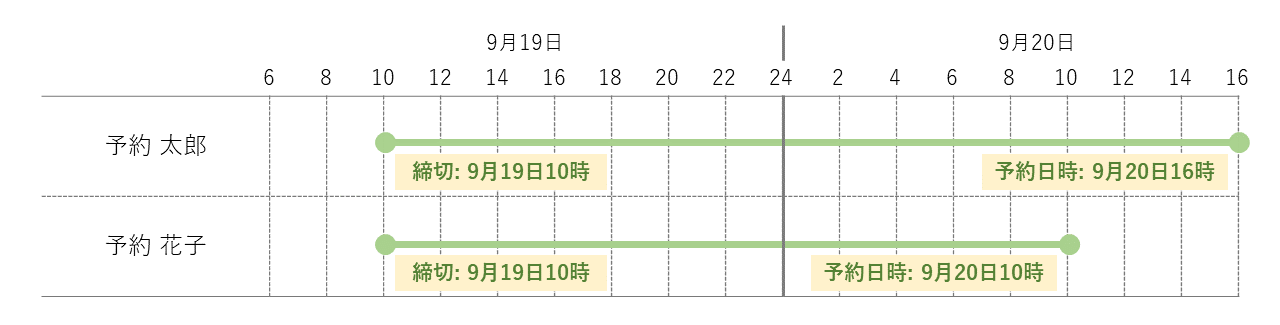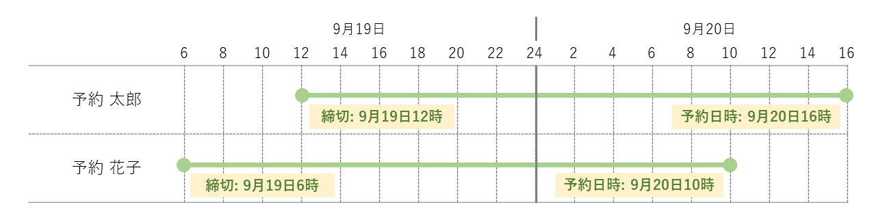 予約日を起点に、何日前の何時までキャンセル / 予約変更を受付けるかを設定します。