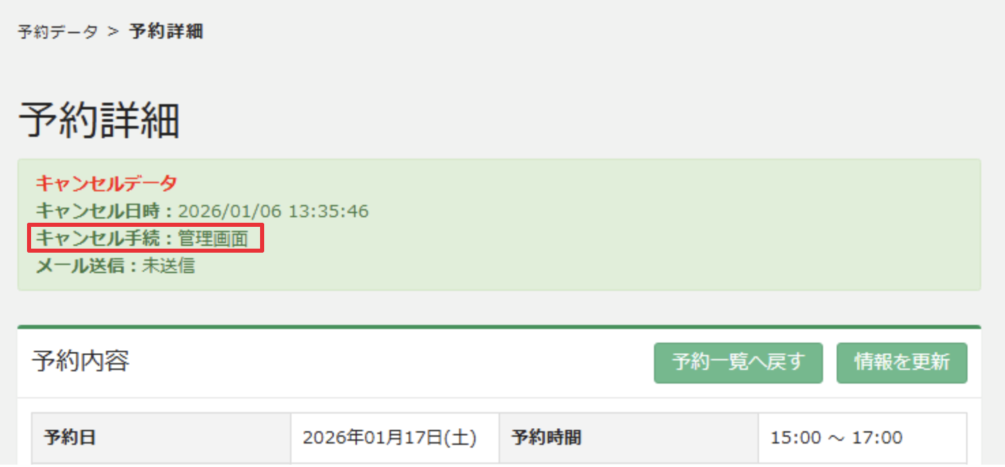 予約がキャンセルされた際、その操作が管理画面から行われたものか、予約サイトから行われたものかを、